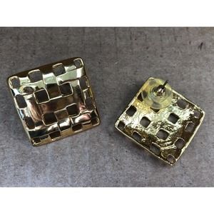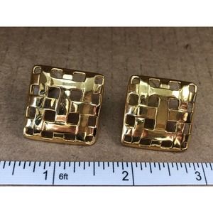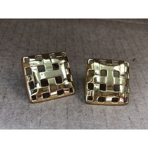 Butler Gold Tone Square Stud Earrings W/Basket Weave Gingham Plaid Design