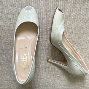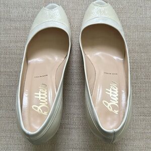 Butter Bridal Peep Toe Pumps Leather Handcrafted in Italy Cream Size 9