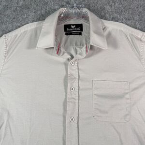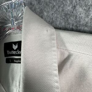 Butter Cloth Shirt Men's Large Beige Zig Zag Regular Fit Tiny Mark On Collar