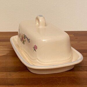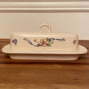 Butter Dish with Lid Floral and Ribbon Design by International China Stoneware