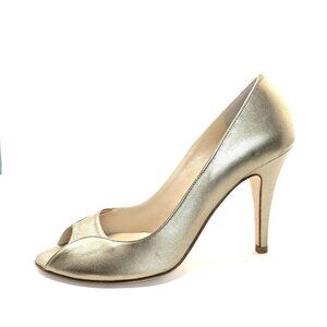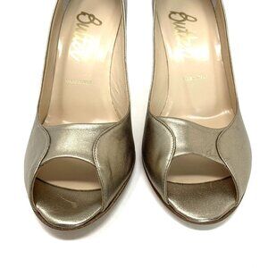 Butter Italy Shoes Size 8 Metallic Gold Leather Peep Toe Pumps Heels