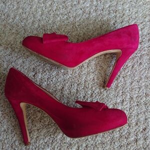 Butter Red suede leather Made in Italy with Bow Accent pump heels size 6.5