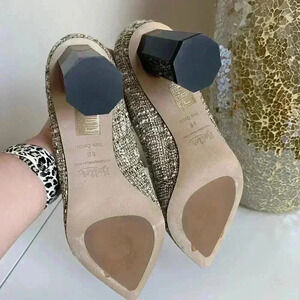 Features: A pointed toe, classic pump with an unexpected leather wrapped octagonal heel. The rich tweed or leather upper is incredibly versatile and can be worn with everything from brown, black, navy and everything in between.