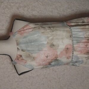 Floral-Printed Chiffon Sheath with Beaded Waist Size 14 Wedding Formal Maxi Long Jewels Spring Summer Mother of the Bride Embellished Feminine Bridesmaid Preowned