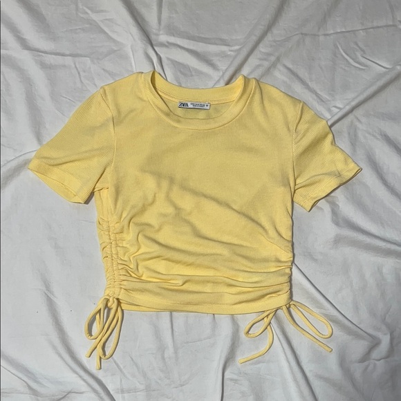 Butter yellow ribbed ruched top from Zara. Ties on the sides. Size: Small. Condition: 9/10.