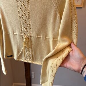 Abercrombie & Fitch butter yellow knit sweater with cutie tie details and pattern. The perfect spring sweater.
