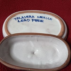 Talavera butter dish. Measures 5 inches long for dish and the lid is 3 inches.