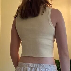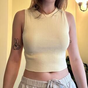 pastel yellow, cropped top, sleeveless tank, knit fabric, casual wear, summer top, minimalist style, soft tones, basic top, everyday essentials