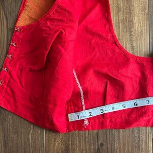 SIZE: approx. Bust-36, PTP: 17.5 in, Length: 14 in. Blouse has seam allowance to expand. Blouse margins to open-1.5 inch on each side