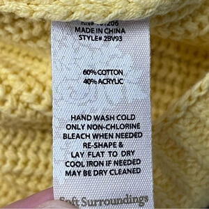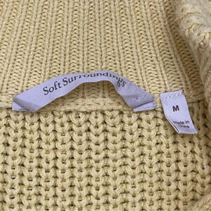 Butter yellow Soft Surroundings Highland knit sweater tunic with pockets. Size medium. Snap closures can be opened or closed to make a mock turtleneck. Excellent preloved condition. Smoke free home, will ship in 1-3 business days.