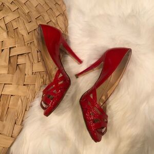 Butter red patent leather peep toe heels 8 criss cross Xmas valentines