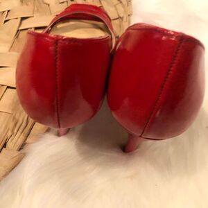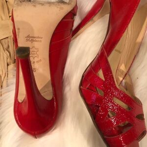 Butter red patent leather peep toe heels 8 criss cross Xmas valentines