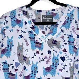 Butter-Soft V-Neck Llama Print Scrub Top M