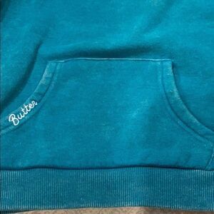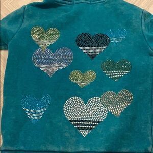 Butter Teal/Green Hooded Heart Love Sweatshirt. Sparkle hearts. Lace ties at neck. Love on the hood. Gently worn. Size 5.