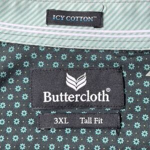 Buttercloth Icy Cotton Shirt Mens Sz 3XL Tall Fit Green Long Sleeve Button Down