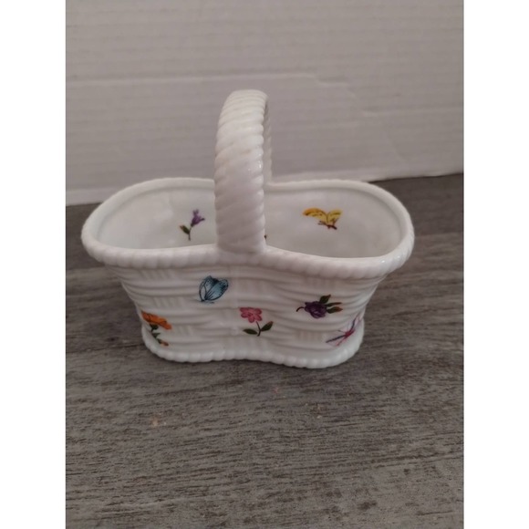 4 1/2" x 3 1/2" Butterflies and Flowers Vintage Irice Ceramic Basket I.W. Rice & Co Made in Japan