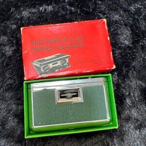 Butterfly 2.5X Opera Glasses Vintage Binoculars Chrome & Green By Compass