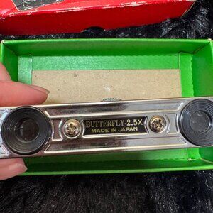 Butterfly 2.5X Opera Glasses Vintage Binoculars Chrome & Green By Compass Industries