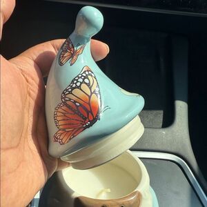 Butterfly Accented Ceramic Gnome Figurine candle NWOB
