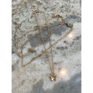 3 Layer Anklet Bracelet - each Chain has different design and all have Lobster Clasp on each chain. Chains can be worn as a set or separately. Total length 10 1/8” #butterfly #mothers day
