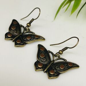 Butterfly Antiqued Gold Tone Enamel Earrings Spring Summer Butterflies 4013