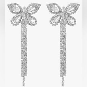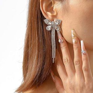 Butterfly Chandelier Pave Rhinestone CZ Crystal Silver Earrings Butterflies New