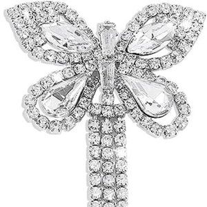 Clear Pave Rhinestones Silver Butterfly Statement Earrings