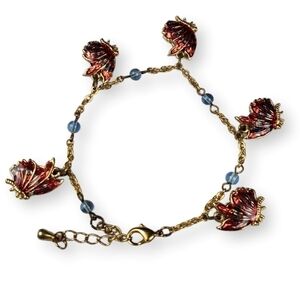 Butterfly Charm Bracelet Colorful Red Blue Enamel Gold Plated Cable Chain Dangle