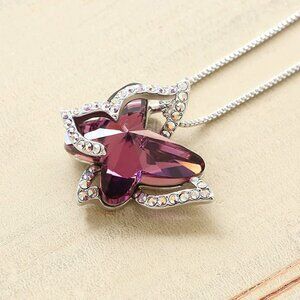 Beautiful Crystal and Rhinestone Butterfly necklaces, super sparkly crystals in pink, purple and clear with a silver plated alloy setting, these are perfect for butterfly lovers. They will not disappoint. Make sure to see our beautiful crystal butterfly bracelets which are a perfect and affordable match for these lovely necklaces.