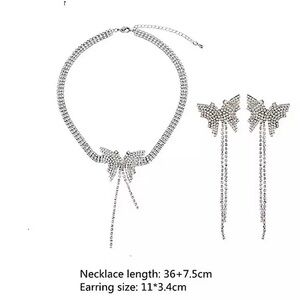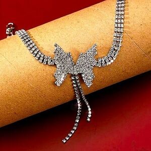 Butterfly crystal rhinestone sterling silver plated tassel necklace.