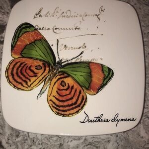 Elegant square plate featuring a vibrant butterfly design. Perfect for adding a touch of nature to your dining experience.