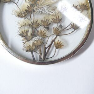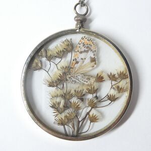 Butterfly & Dried Flower Necklace Real Taxidermy Vintage 1970s Round Pendant