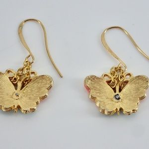 Butterfly Earrings Hook Drop Enamel Jewelry Orange Coral Blue Green W/ Gold tri