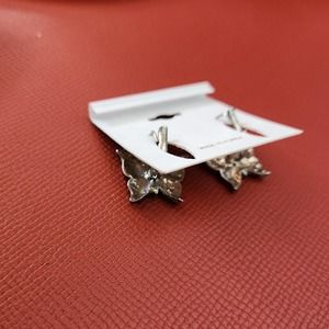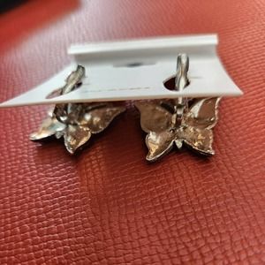 Butterfly Earrings Silver Tone Non-Magnetic Metal Pink & Orange Wings