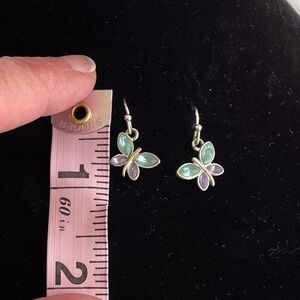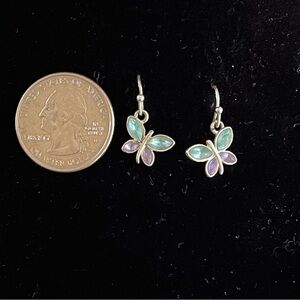 Butterfly Earrings Silver Tone and Jewel Tone Blue Purple