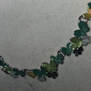 Charming butterfly Elegance Green enamel necklace with matching earings. New in box.