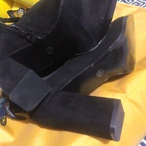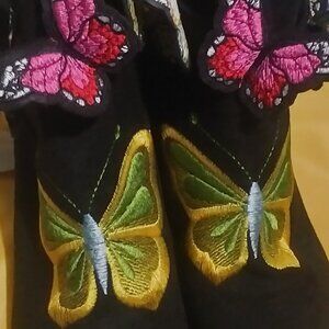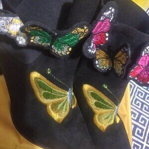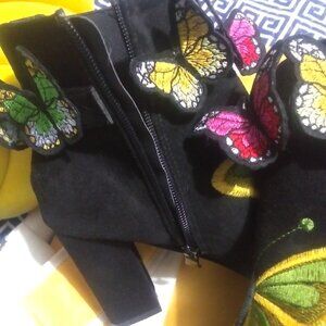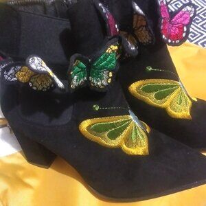Butterfly Embriodery Faux Suede Black Ankle Boots sz 40