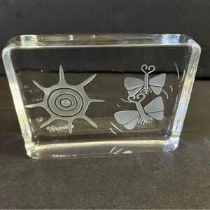 Butterfly Etched Glass Block Paperweight Sun Rectangle Signed Southwestern