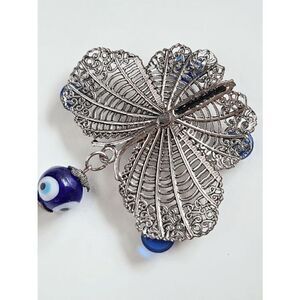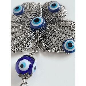 Silver Tone Metal Butterfly accented with evil eye beads. Use this good luck charm as a keychain/keyring or to accent your pocketbook or bag.