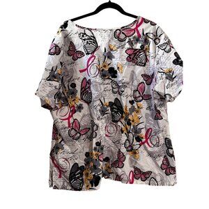 Butterfly & Floral Pattern Womens Scrub Top 3XL By Scrub H.Q. 100% Cotton