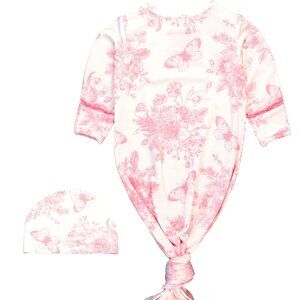 Butterfly Garden Toile Ruffle Knotted Sleep Gown & Bow Hat Set