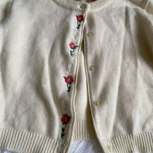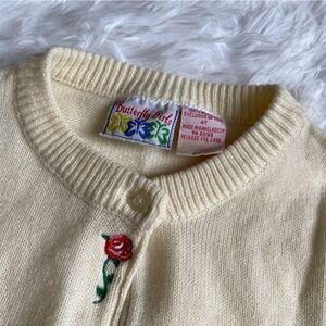 Butterfly Girls Sweater Vintage Button Front Rose Floral Embroidered Acrylic 4T