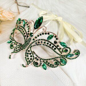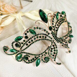 Butterfly Green Masquerade Mask, Wedding Party Gold Eye Mask, Crystal Party Mask