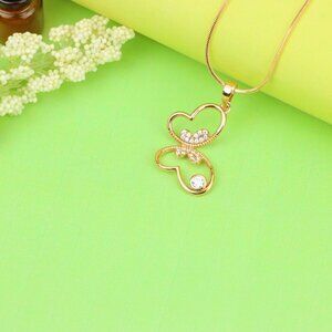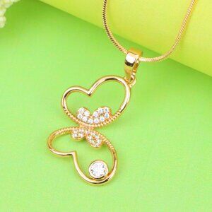 Charming butterfly and heart-shaped pendant design with sparkling accents for a delicate and elegant look.