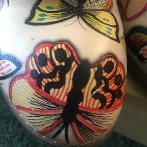 Butterfly print Leather dress slides.