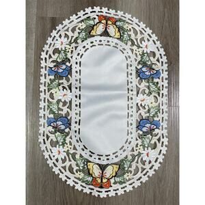 Butterfly Lace Table Oval Floral Embroidered Cutout Doily 100% Polyester