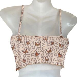 Butterfly & Leopard Lettuce Trim Mesh Cami Crop Top Size XS