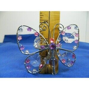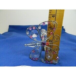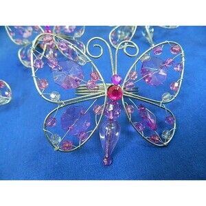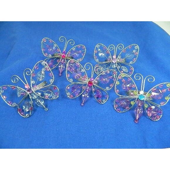 Butterfly Napkin Rings Lot of 5 Silver Tone Wire with Multicolored Beads Butterflies are 3"H X 3.5"W
