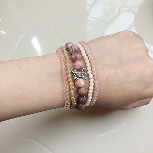 Butterfly Natural Stone Beaded Bracelet w/ a sparkle
