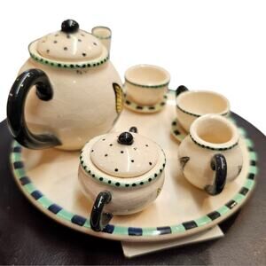 Butterfly Pattern Mini Tea Set Teapot Cream Sugar 2 Tea Cups with Saucers